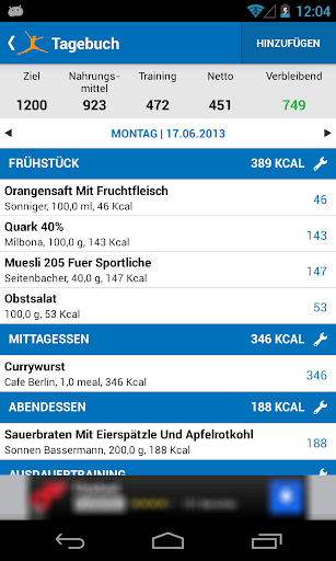 Diese App machte auf den ersten Blick gleich schon mal einen besseren Eindruck. Ich fütterte das Tagebuch mit den Daten von meinem Frühstück und war schon mal mit der Handhabung zufrieden. Von meinem Mittagessen wusste ich den Kaloriengehalt aus dem Rezeptbuch, also wollte ich diesen direkt eingeben, was sich aber schwieriger herrausstellte als im ersten Moment gedacht. Eine Direkteingabe für kcal habe ich nicht gefunden (falls sie überhaut existiert) und deswegen habe ich ein neues Nahrungsmittel erstellt. Das hat aber nicht so richtig funktioniert, so dass ich vor lauter Frustration das Handy beinahe gegen die Wand geschmissen hätte. Diese App konnte also auch keine Alternative sein.